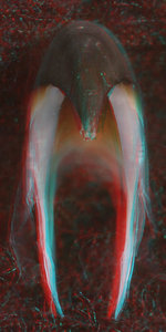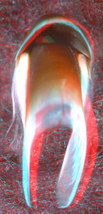 About anaglyph 3D: Photographs here are in 3D, using anaglyph  techniques which combines two photographs one in red and the other in  cyan (blue + green) color. To get the 3D effect, you must use glasses  with red and cyan lenses (filters) over your regular glasses. The form  of the beak is far easier to interpret in 3D and we strongly recommend  to the viewer that the glasses be obtained (this is especially helpful  when viewing enlarged images - i.e. click on the image). These beak  photographs were made using Red and Cyan Anachrome Aviator Glasses (see:  http://www.anachrome.com/glassbuy.htm or http://www.amazon.com) which  cost under $10.00 (USD).