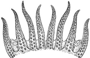 - Hectocotylus broad in basal half in region of copulatory apparatus, distal half normal.
