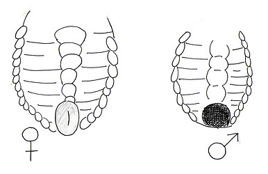 Students were also asked to draw the difference between male and female flies. This was usually a drawing of fly abdomens copied from the Carolina Drosophila manual, but sometimes students got more creative.